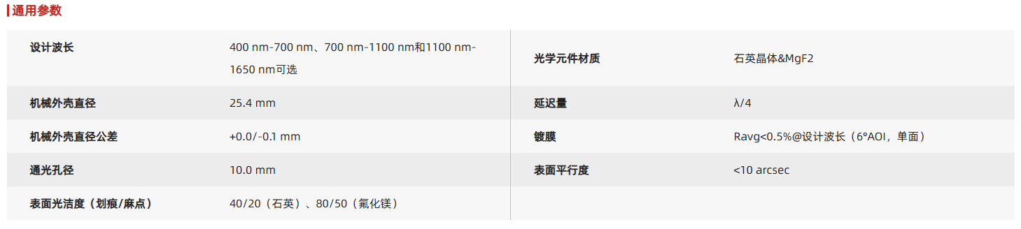 消色差四分之一波片,通光孔径Ø20.0 mm,SM1套筒安装