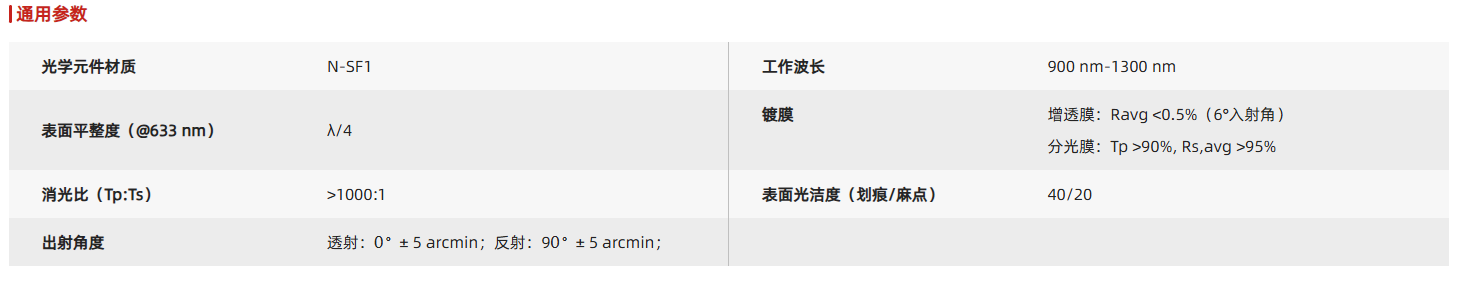 宽带偏振分束立方,增透膜:900 nm-1300 nm,30 mm同轴立方体安装座