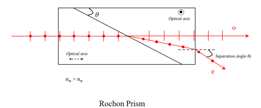 洛匈棱镜是一种由两块光轴互相垂直的负单轴晶体(方解石或α-BBO)棱镜通过胶合或光胶工艺配合而成的偏振器件。自然光入射时,能在棱镜透射端得到偏振方向相互正交的,具有一定分离角的两束线偏振光。