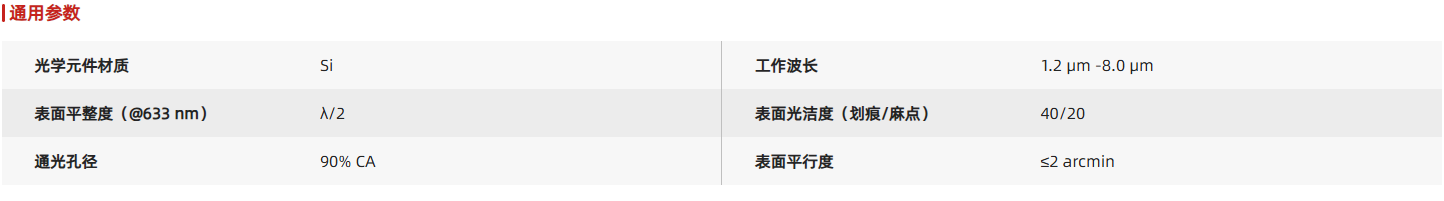 硅窗口片在中红外波段具有很高的透过率。具有较高的热传导率。所有圆形窗口片均可安装于标准透镜套筒、固定式透镜镜架以及各类同轴安装板上。客户可针对不同应用场景选择最佳安装方式。