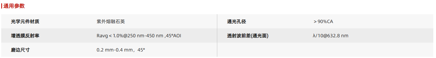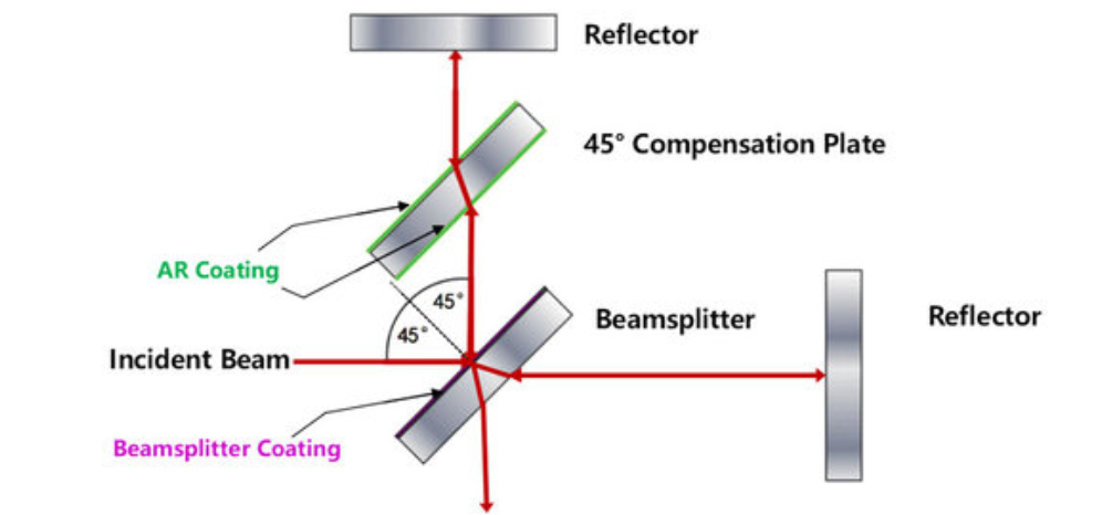 提供的45°分束补偿片是一种光学窗口,可用于补偿光束通过不同基底厚度而产生的相位差。与传统窗口片的0°入射角设计不同,分束补偿片的最佳入射角设计为45°,因此一般与分束镜配合使用。