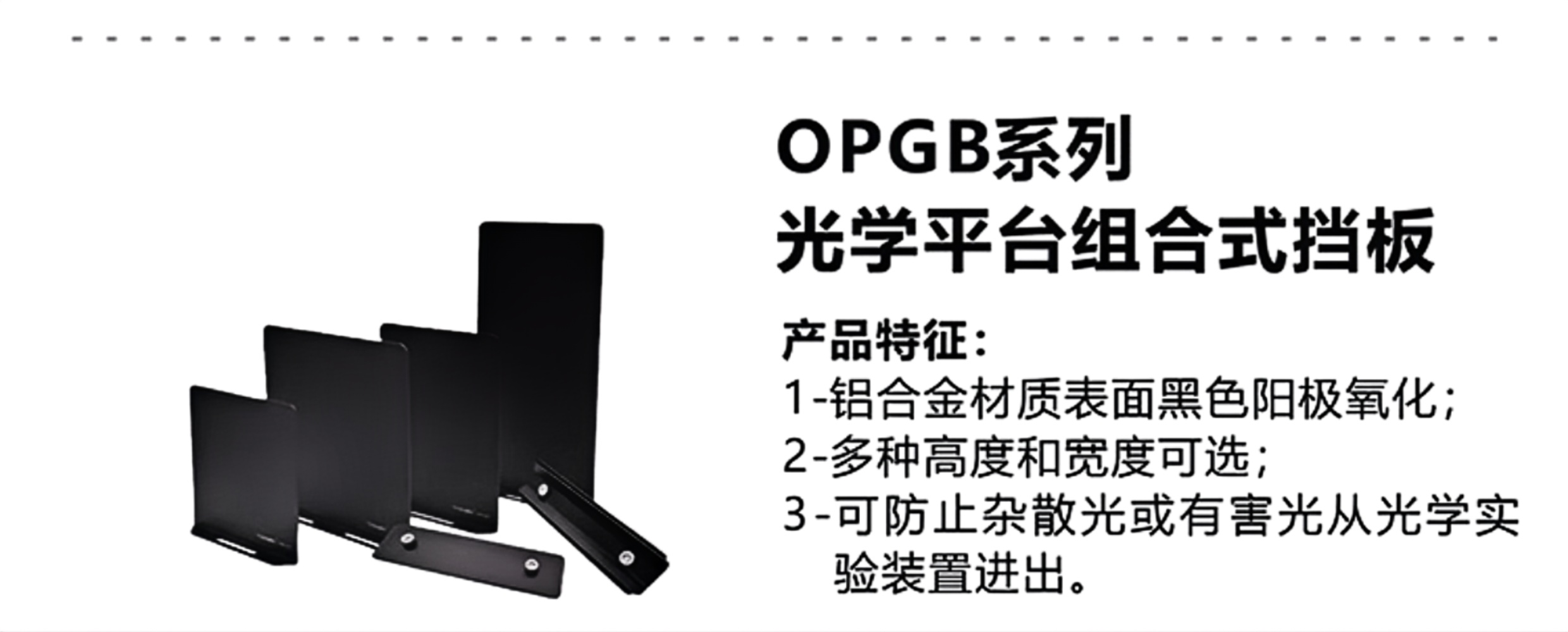 1-铝合金材质表面黑色阳极氧化 2-多种高度和宽度可选; 3-可防止杂散光或有害光从光学实验装置进出。